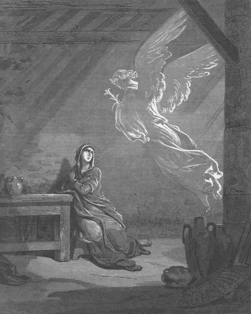 28 L'ange, étant venu vers elle, lui dit : Je vous salue, pleine de grâce ; le Seigneur est avec vous ; vous êtes bénie entre les femmes.